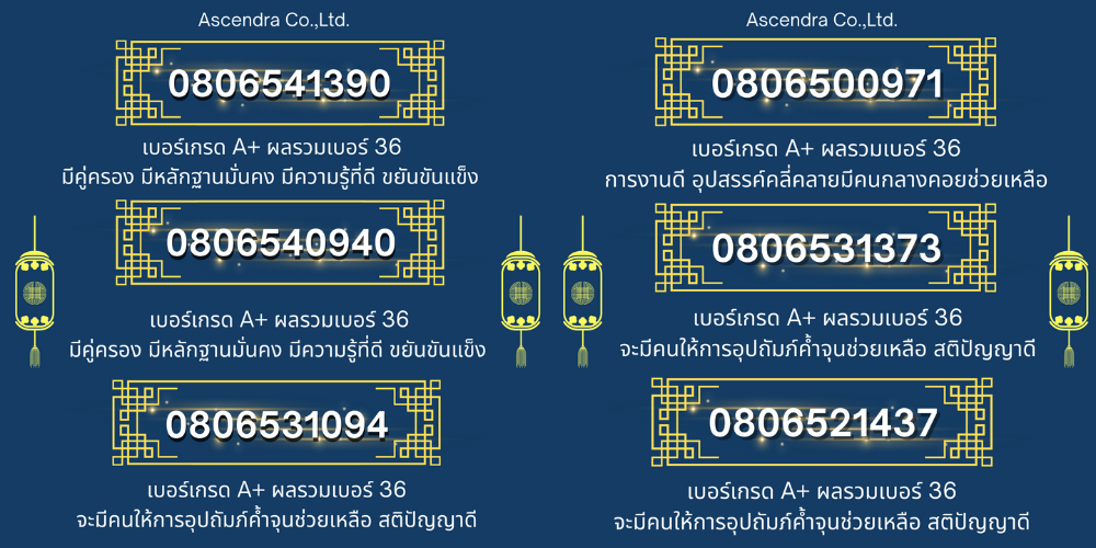 จากการรับชมเบอร์และเกรดของแต่ละเบอร์ที่ผมได้ทำการคัดมาแล้ว ว่าเป็เบอร์แบบความหมายดีและอยู่ในระดับ A+ ที่จะช่วยสนับสนุนหรือเป็นตัวช่วยเสริม ทางด้านความเชื่อให้คุณได้ใช้เบอร์มือถือได้อย่างสบายใจ และเลขมงคลนั้นสามารถดึงดูดโอกาสที่ดี ความช่วยเหลือดีๆ มายังผู้ใช้งาน