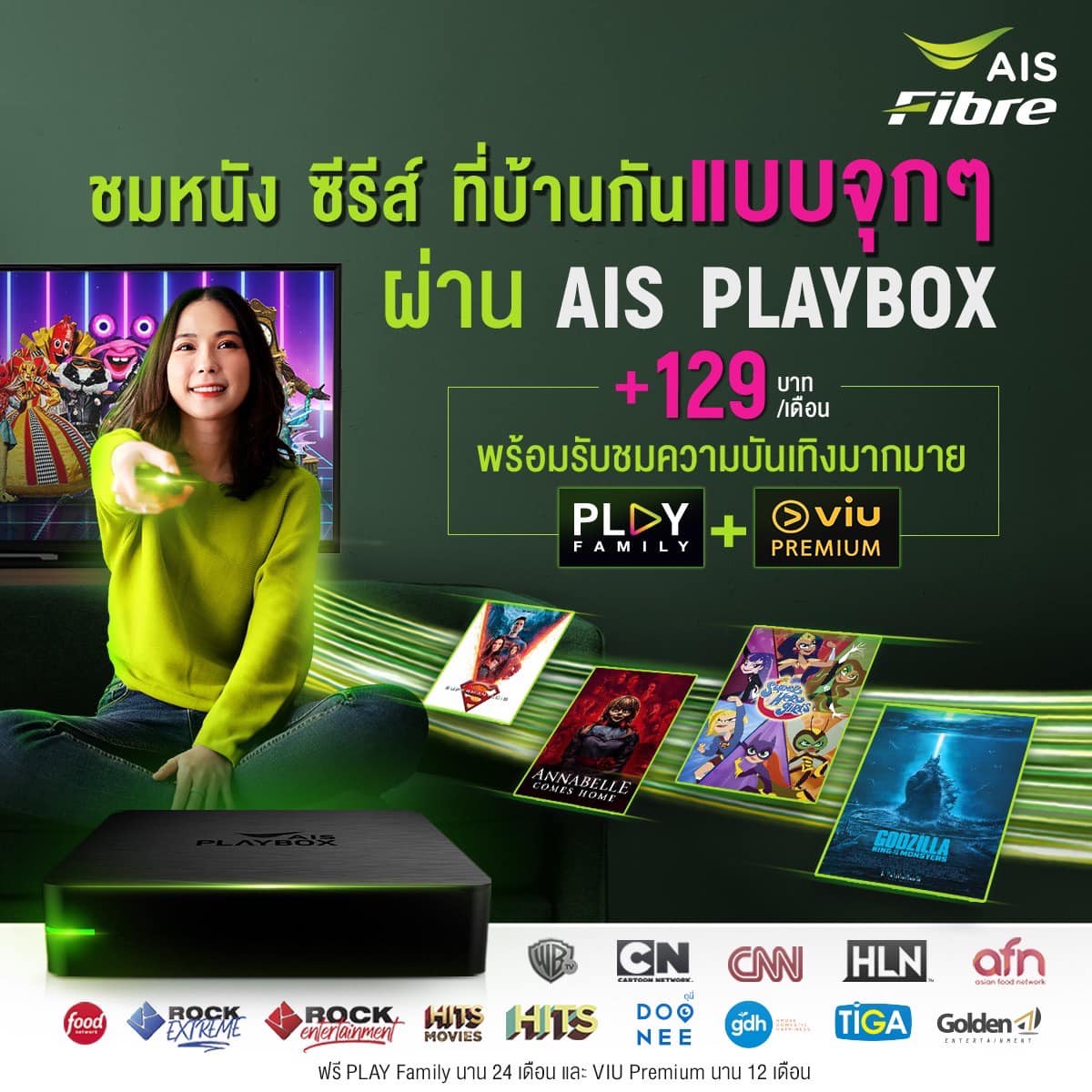 สำหรับแพ็กเกจข้างต้นจะยังไม่รวมกล่องทีวี AIS PLAY BOX ทั้งนี้หากสนใจรับกล่องทีวีสามารถสมัครเพิ่มได้เลย โดยจะมีค่าบริการ 129 บาท/เดือน เท่านั้นค่ะ !