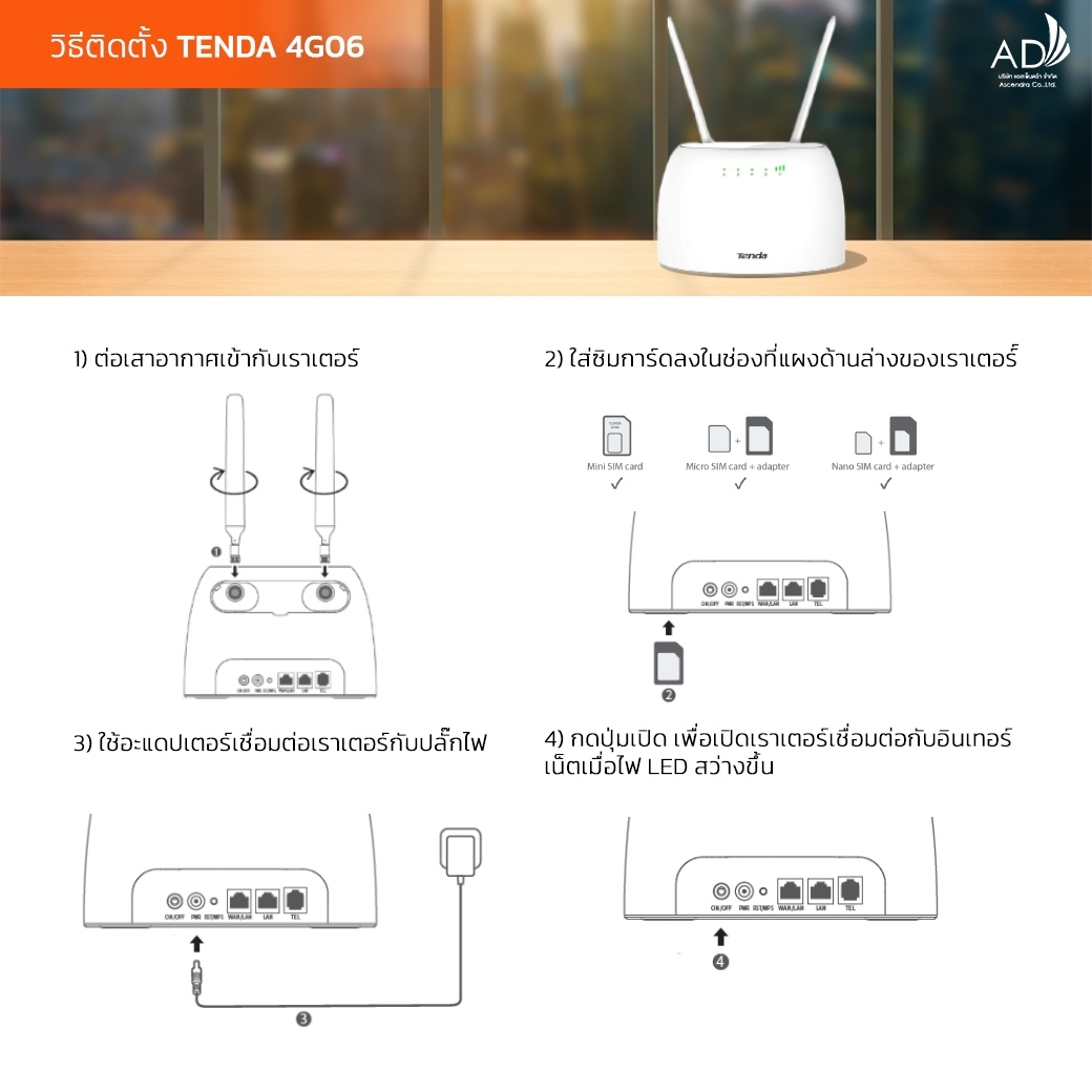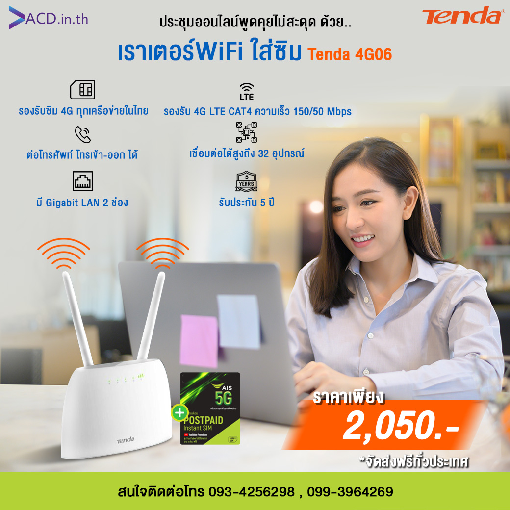 สำหรับเราเตอร์ใส่ซิมแบบตั้งโต๊ะรุ่นที่คนนิยมใช้คือ Tenda รุ่น 4G06